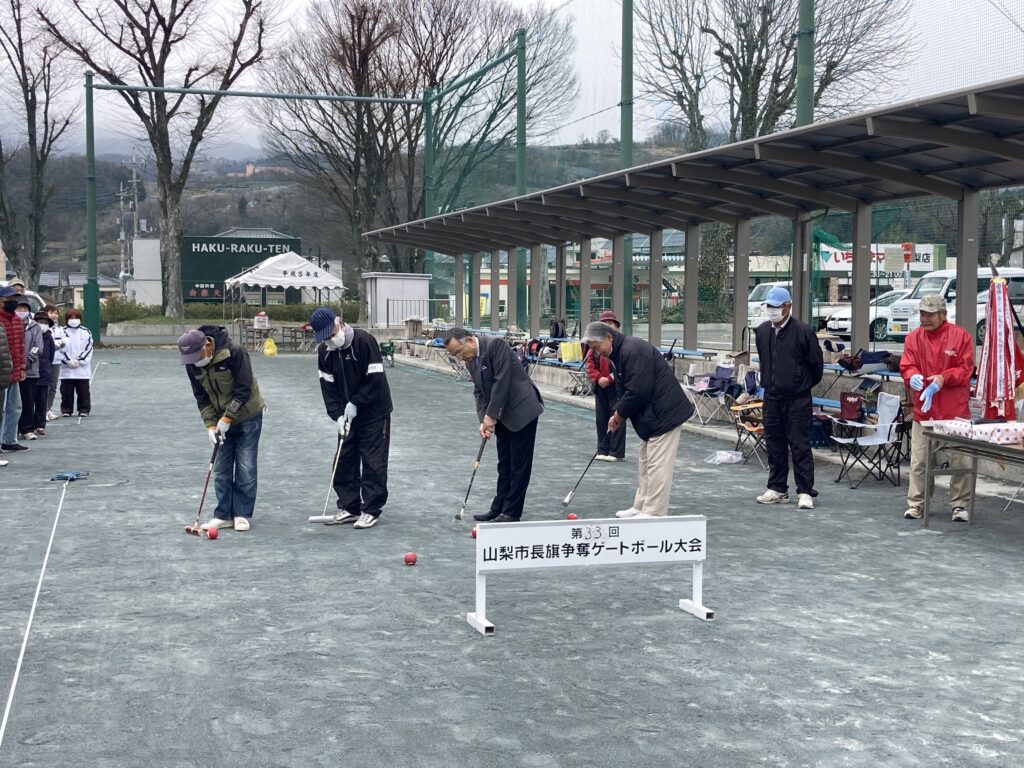 3月23日(土)市長旗争奪ゲートボール大会 投稿日: 2024年3月23日2024年6月11日 投稿者: staff 3月23日、小原スポーツ広場において、山梨市ゲートボール連盟主催の。市長旗争奪ゲートボール大会が開催されました。当日はたくさんの方が参加され、プレーを楽しんでおられました。末永くゲートボールをお楽しみいただけるよう、健康に留意し、90歳・100歳と長生きしていただきたいと思います。