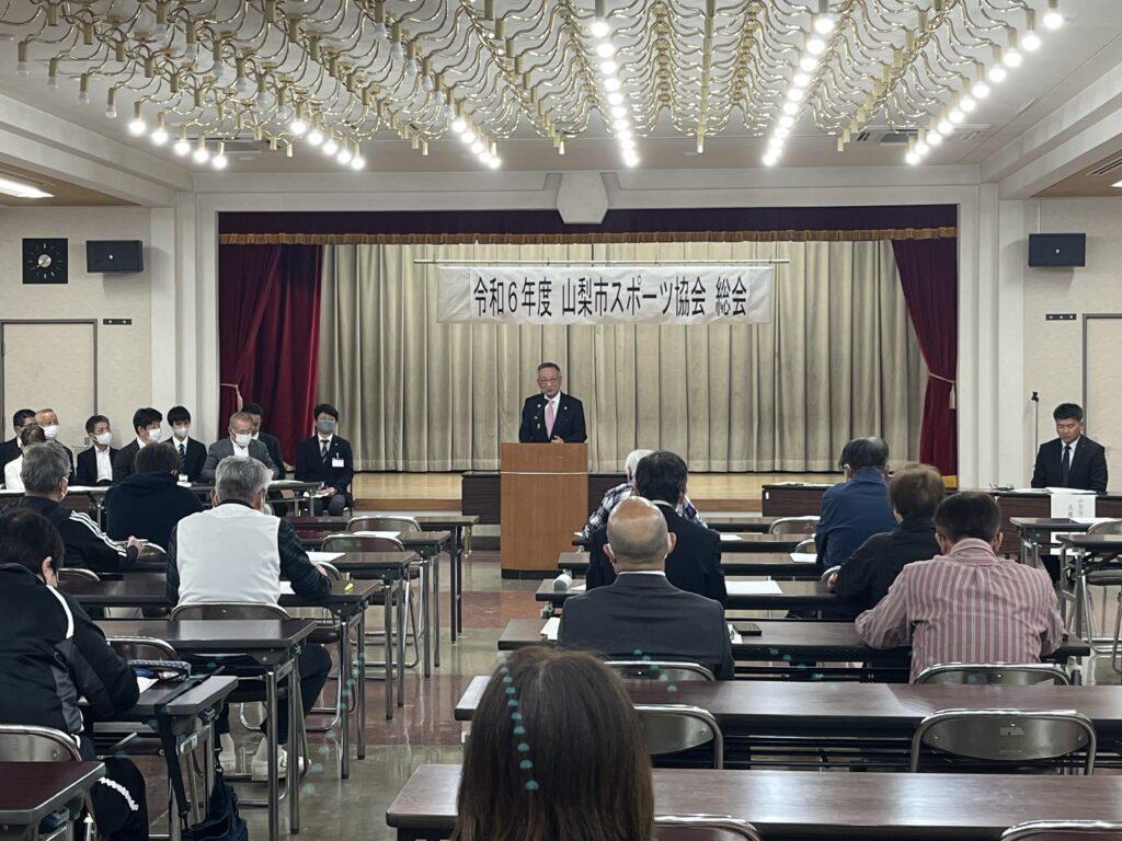 4月22日(月)山梨市スポーツ協会定期総会 投稿日: 2024年4月22日2024年8月14日 投稿者: staff 4月22日、夢わーく山梨にて、山梨市スポーツ協会定期総会が行われました。スポーツ協会は会員相互の親睦を図るとともに山梨市内における各種体育・スポーツ団体を統轄し各種スポーツ活動を健全に普及発展させ、市民体育の向上に寄与することを目的として、活動を行っています。スポーツは健康づくりにおいて、大切な活動です。スポーツ協会が中心となり、山梨市におけるスポーツ文化がさらに発展することを願っています。