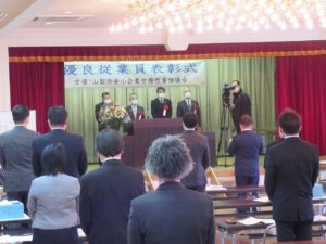 3月25日(金)山梨市中小企業労務改善協議会永年勤続優良従業員表彰 投稿日: 2022年3月25日2022年7月4日 投稿者: staff 本年も、山梨市中小企業労務改善協議会永年勤続優良従業員表彰が行われました。 協議会では、ソフトボール大会や盆踊り大会などを実施するなど、労働福祉の向上や労働管理の改善に関する様々な事業を行っていただいております。 近年は、新型コロナウィルス感染症の感染拡大により、協議会の皆様におかれましても、大変なご苦労があったと伺っております。 協議会の更なる発展と、会員の皆様のご健勝をご祈念申し上げます。