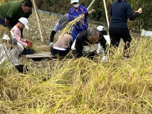 6月12日に田植えをし、4ヶ月ほどで、大きく実った稲を、子供たちと一緒に刈り取りました。