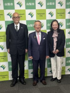 山梨大学市川・マオ副学長をはじめ、理事や教授の皆様が大変お忙しい年度末にもかかわらず、本市にお運びいただき、農業・教育に関する私どもと共同して取り組んでいる、マッチングファンド事業の最終報告をしていただきました。