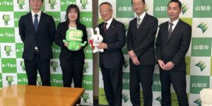 山梨税務署の井上署長をはじめ、職員の皆様がスマホを使っての【 …